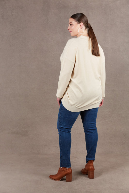 The Irula Knit, a versatile staple, guarantees repeat wear. This cosy knit showcases a flattering V-neck with beautiful lurex threading for a touch of elegance in a comfortable, everyday fit. Whether over a shirt or under a coat, this knit is ideal for layering, effortlessly balancing style and warmth as a reliable go-to in your wardrobe rotation.