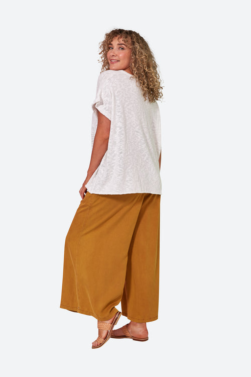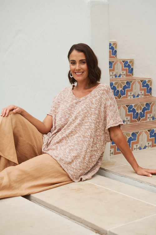 Relaxed, laidback, and effortless - that's how we'd describe the Jovial Top! Softly knitted with cotton, this one-size style features a V-neck, short sleeves, and a rolled edge. This style is ideal for transeasonal styling. Pair it over loose pants and sneakers for a relaxed, casual vibe.