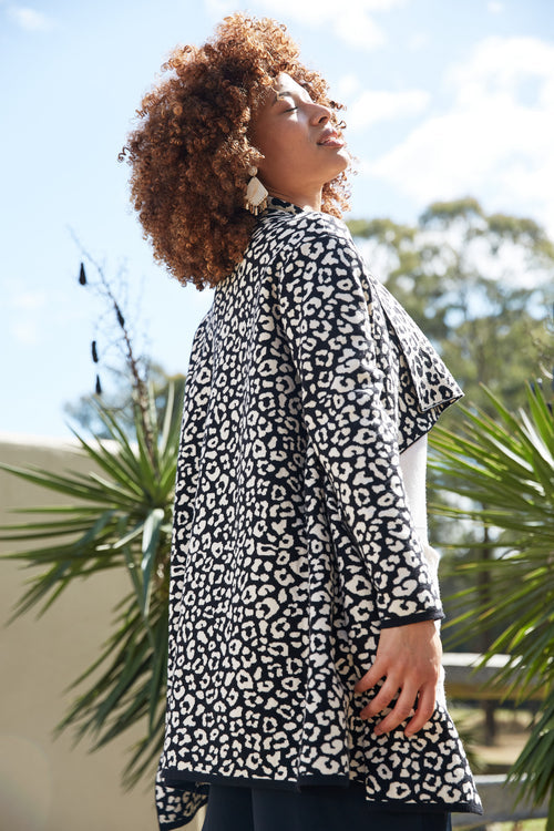 Embrace winter in the Pilbara Waterfall Cardigan, your new seasonal favourite. The sleek, city-chic vibe, courtesy of its waterfall design and stylish woven leopard print, ensures a stunning look. The warm knit fabric guarantees cosiness, with the relaxed fit prioritising comfort. Style it for a day out in the city over a knit top, leggings, boots and a purse to match!