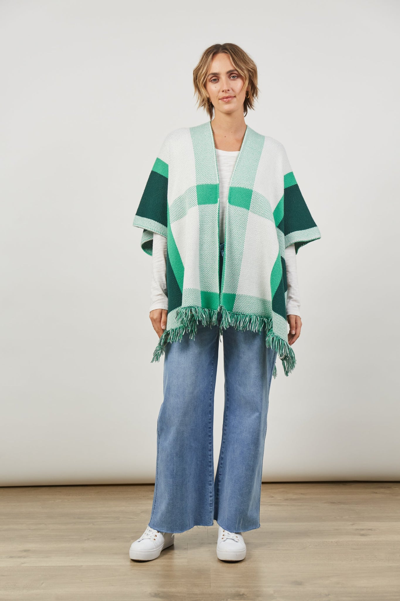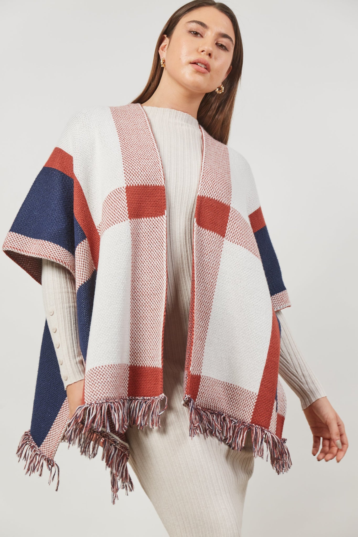 Embrace the approaching chilly season with the Vista Cape - a versatile layer that effortlessly complements any ensemble. The thick woven knit showcases a contemporary contrast design, while fringed detailing on the hem adds a delightful touch to the open-style silhouette. Ideal for heavy layering, this cape promises warmth and style for the upcoming cold days.