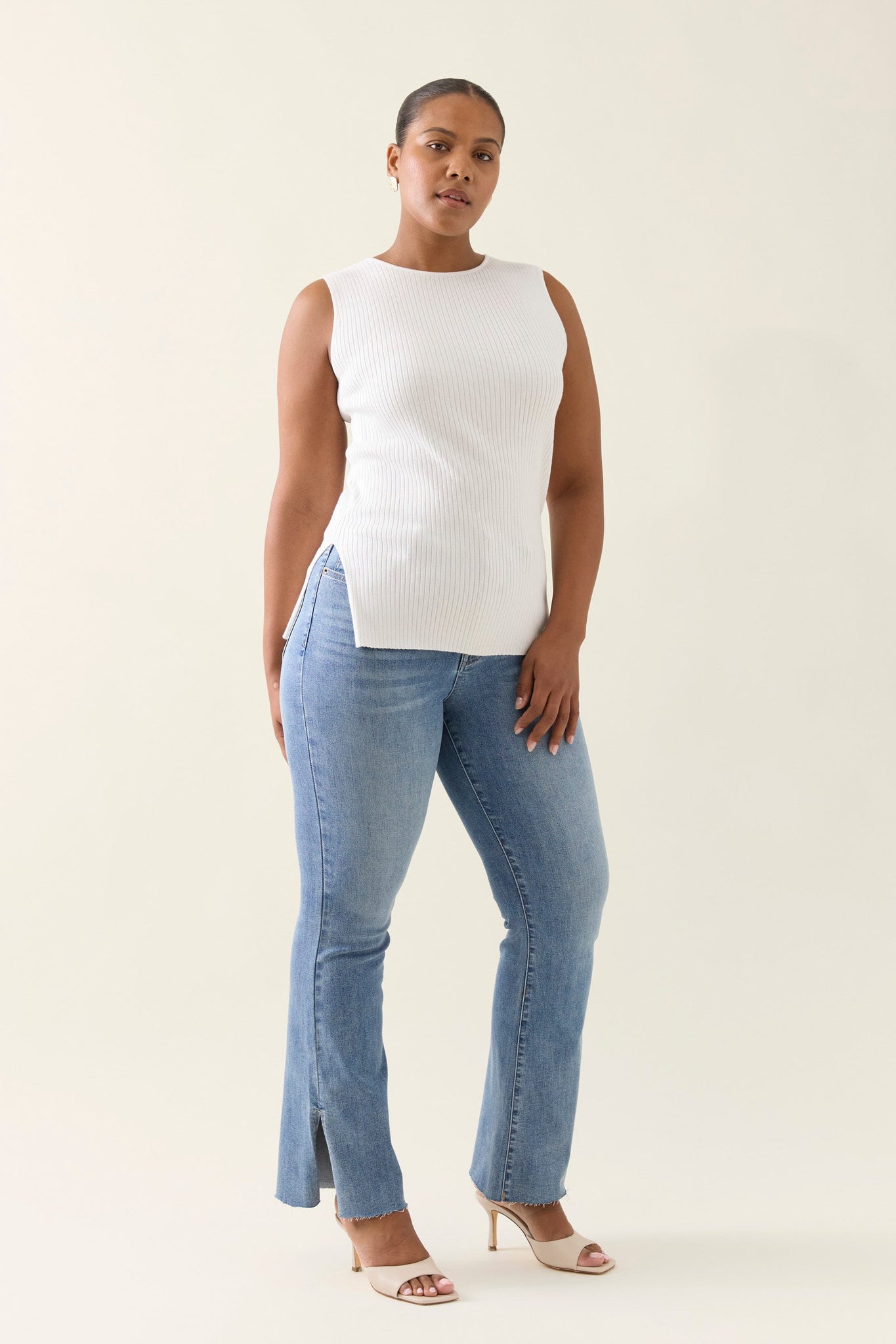Meet your new go-to tank—the Adele brings playful edge with its bold side split and minimalist high neckline. The ribbed knit fabric moves with you, offering a flattering fit that breathes as well as it looks. Simple, chic, and ready for anything.