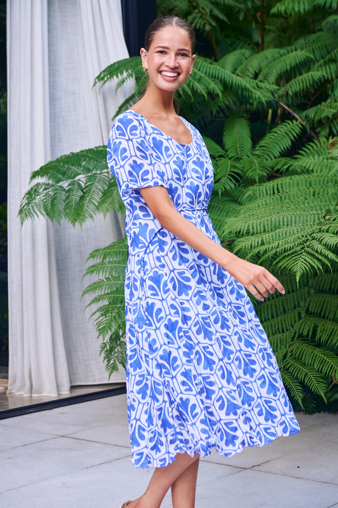 This versatile midi dress is your new go-to for effortless style. The smocked bodice provides a comfortable, flattering fit while the convertible flutter sleeves let you switch between on-shoulder and off-shoulder looks whenever the mood strikes. Made from 100% crinkle cotton with a naturally textured finish, it drapes beautifully to mid-calf length. Practical hidden side pockets keep your essentials close, and the relaxed silhouette works just as well for casual outings as it does for laid-back gatherings. One dress, endless possibilities.