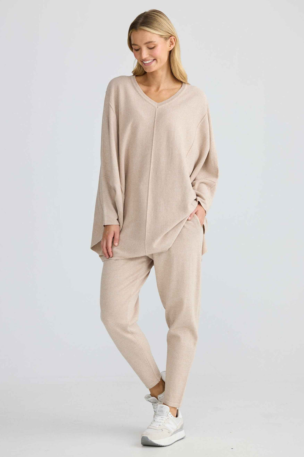 Slip into laid-back luxury with the Woodside Pant—where comfort meets cool. This oversized batwing silhouette features a cheeky V-shaped neckline and dramatic long sleeves that taper at the sides for an effortlessly undone vibe. Wrapped in buttery soft marle fabric, it's your go-to piece for those days when you want to look intentionally relaxed without trying too hard.