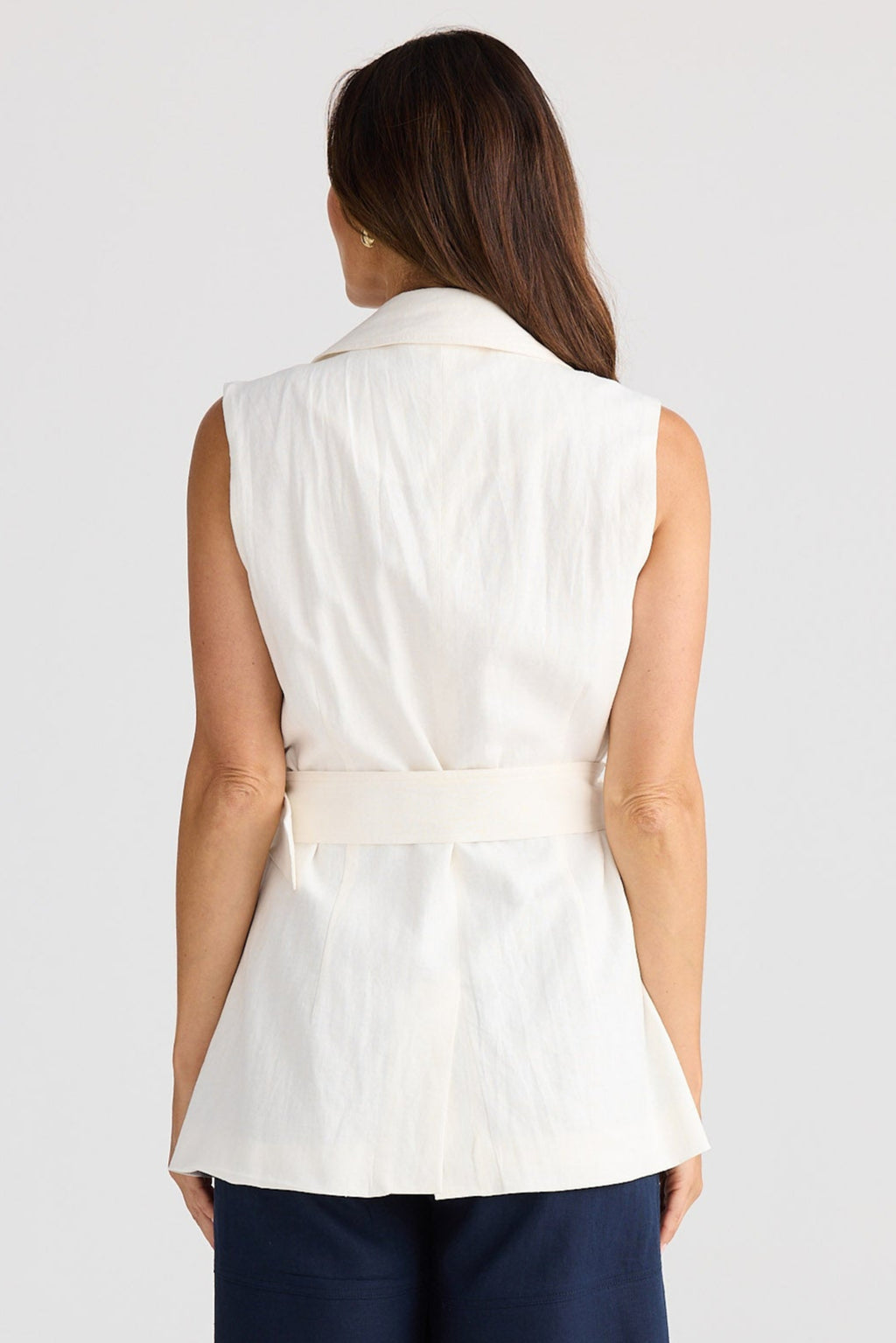 - Layer up your look with this breezy linen-viscose blend vest that means business—but make it fun. The double-breasted front and notched lapels give you that polished vibe, while gold buttons add a cheeky touch of glamour. A self-fabric waist belt cinches everything perfectly for a tailored silhouette that actually flatters. Sleeveless and ready for year-round styling, it's the versatile piece your wardrobe's been waiting for.