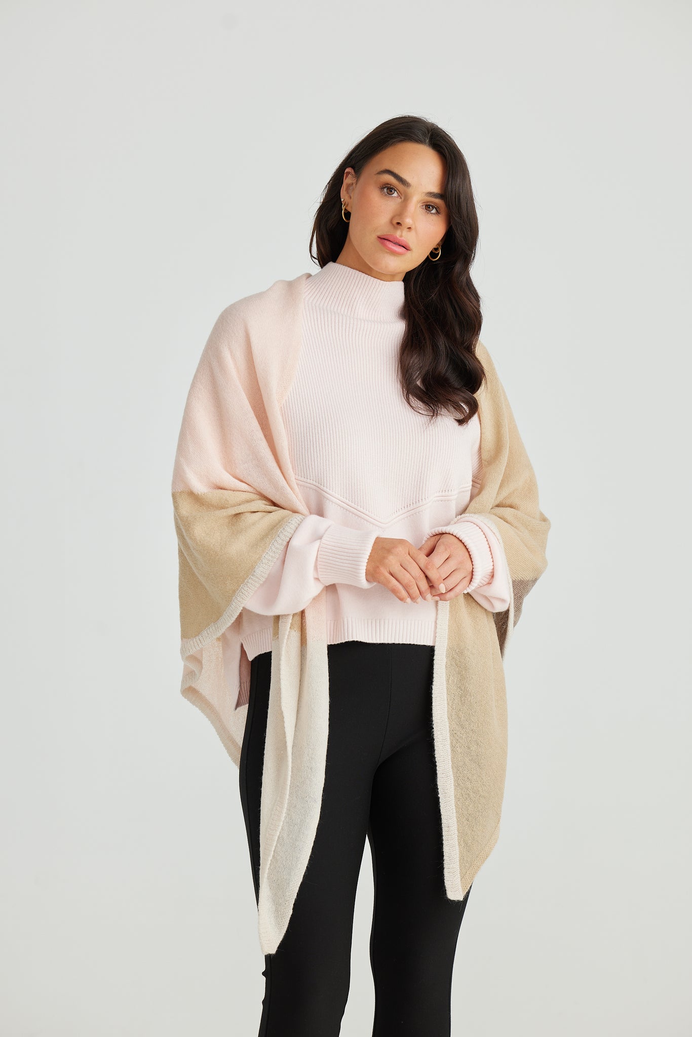 Indulge in the luxurious elegance of our Cotswalds Wrap. Made from a lightweight wool blend, this one-size wrap features a color blocked pattern and falls just below the hips. Stay warm and stylish with this versatile piece that will elevate any outfit.