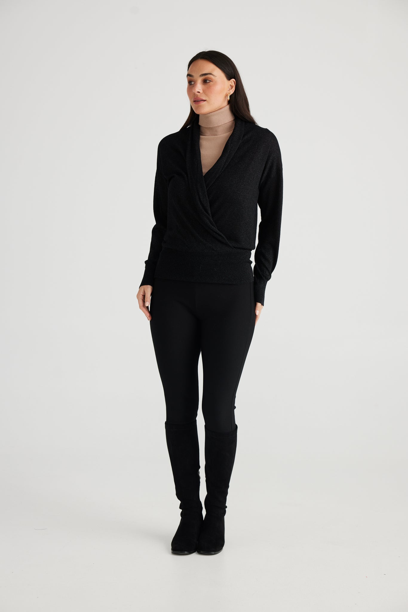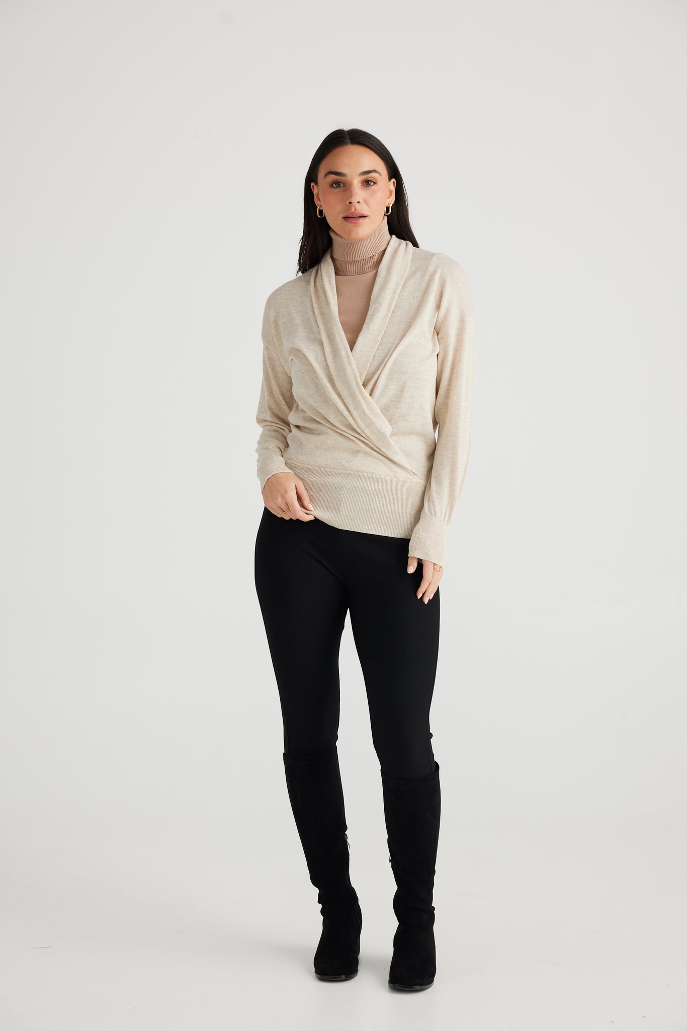 Introducing the Davroe Wrap Knit - a fixed wrap top made from a soft and lightweight knit. Featuring a roll collar, ribbed cuff and hem, and an open front - perfect for wearing on its own or paired with a top underneath. Embrace effortless elegance with this versatile piece.