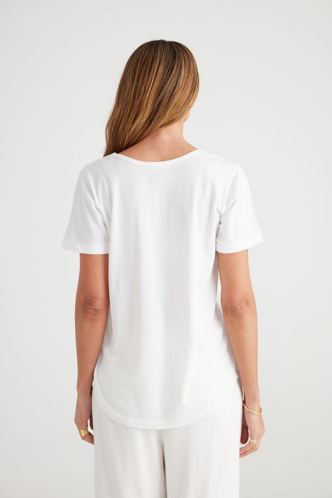 Rock our Skeeter Tee with its V-neckline, short sleeves, and relaxed fit! The high-low hem adds a stylish touch, all made with 100% Cotton Jersey!