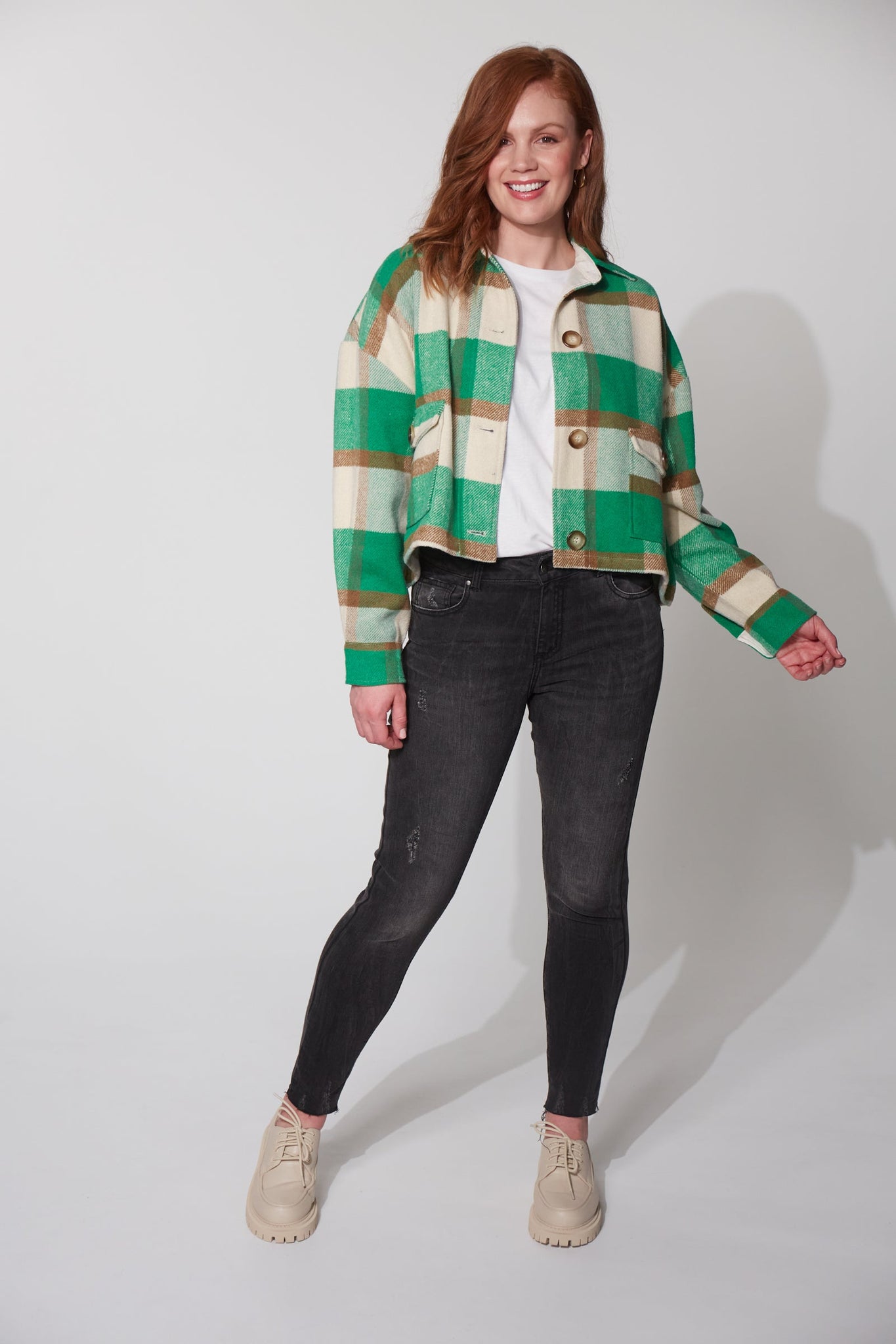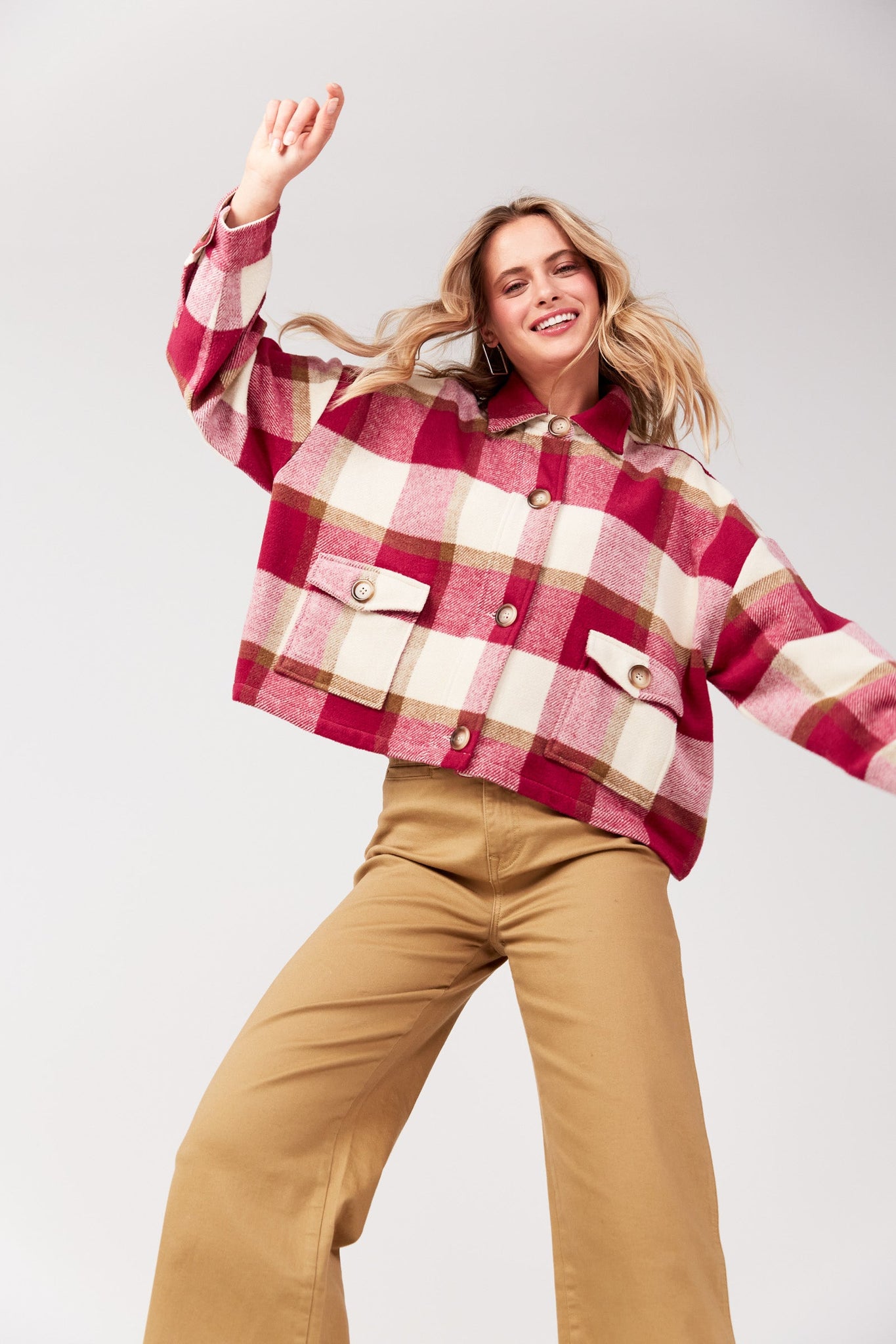 Meet the must-have Braemar Crop Shacket, an essential for your weekend wardrobe. Its casual, oversized look, cropped design and cosy check pattern bring an autumnal feel to your outfit. With button closures, a collar, patch flap pockets, and long sleeves, this shacket offers versatile styling options – wear it solo, layer over a T-shirt, or make it your go-to jacket for a laid-back and stylish ensemble.